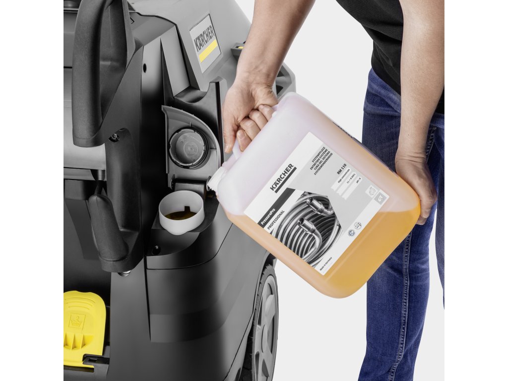 - Z vonku plniteľné nádrže na čistiaci prostriedok, prostriedok na ochranu pred vodným kameňom a palivo.