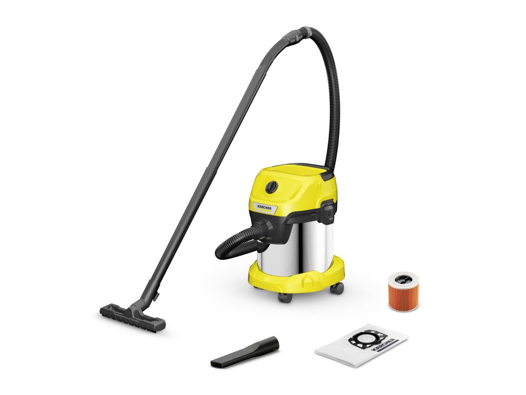 Mokro suchý vysávač WD 3 S V-15/4/20 je výkonný a energeticky úsporný so spotrebou energie iba 1000 W. Stroj, ako aj sacia hadica a podlahová hubica sú dokonale zladené – pre najlepšie výsledky čistenia suchých, mokrých, jemných alebo hrubých nečistôt. Vysávač na mokré a suché vysávanie zaujme kompaktnou konštrukciou a robustnou nádobou z nehrdzavejúcej ocele s objemom 15 l, 4 m káblom, 2 m sacou hadicou a fleecovým filtračným vreckom. Vďaka jednodielnemu patrónovému filtru je možné vysávať mokré aj suché nečistoty bez výmeny filtra. Funkcia fúkania je užitočná na čistenie ťažko prístupných oblastí. Hadica sa ukladá zavesením na hlavu stroja, čím sa šetrí miesto. Kábel je možné uložiť na hák na kábel, trubice a podlahové hubice na nárazníku. Uzamykací systém "Pull & Push" umožňuje jednoduché otváranie a zatváranie nádoby. Rukoväť vysávača je možné odstrániť a príslušenstvo pripojiť priamo k sacej hadici. Tiež šikovné: Nástroje alebo malé diely je možné položiť na plochu hlavy stroja. Ergonomicky tvarovaná rukoväť na prenášanie umožňuje pohodlnú prepravu.