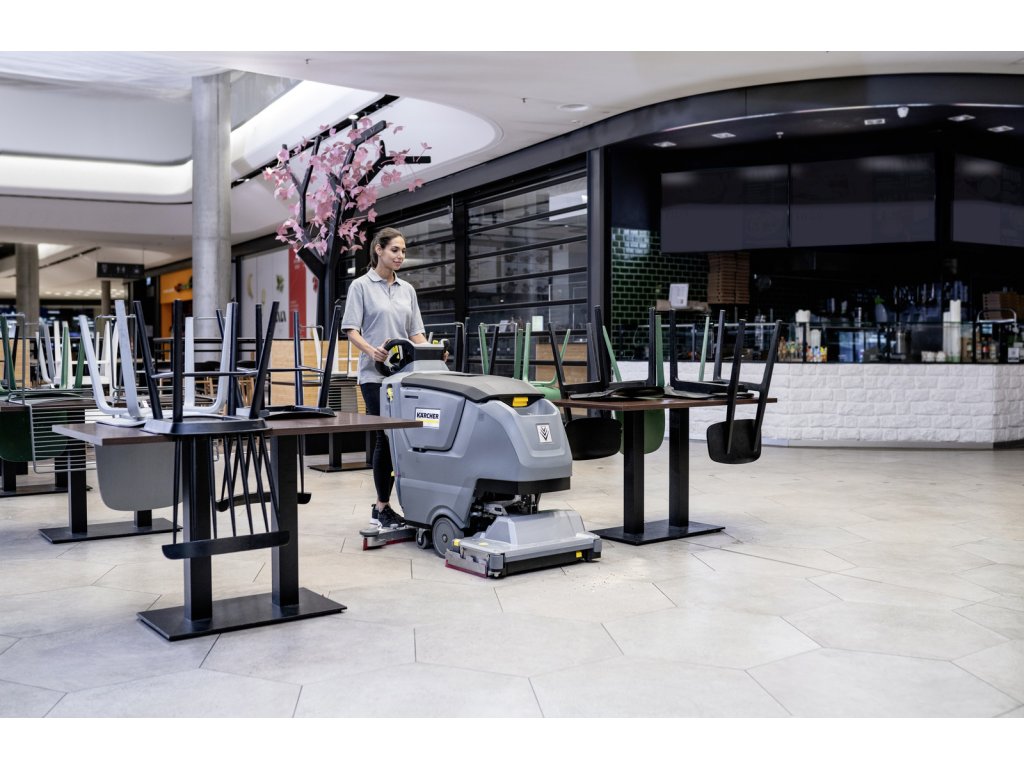 Kompaktný podlahový umývací automat B 50 W Bp je ideálny na efektívne čistenie podláh a môže sa pochváliť mimoriadne robustnou konštrukciou. Hlava kefy a stierka sú vyrobené z liateho hliníka s dlhou životnosťou – pre vynikajúce nasávanie aj na štruktúrovaných povrchoch a v úzkych ohyboch. Hlava kefy R 55 s integrovanou funkciou zametania spoľahlivo zaisťuje optimálne výsledky čistenia a čistenie podláh. Kompaktná konštrukcia ručne vedeného umývacieho umývacieho stroja poskytuje lepší prehľad a manévrovateľnosť aj v ťažko prístupných oblastiach. Pohon kolies uľahčuje obsluhu a znižuje fyzickú námahu používateľov. Čistá voda sa ľahko dopĺňa z akéhokoľvek kohútika pomocou univerzálnej plniacej hadice. Okrem toho môžete pokročilé nastavenia a informácie jednoducho ovládať zo smartfónu pomocou aplikácie "Machine connect".