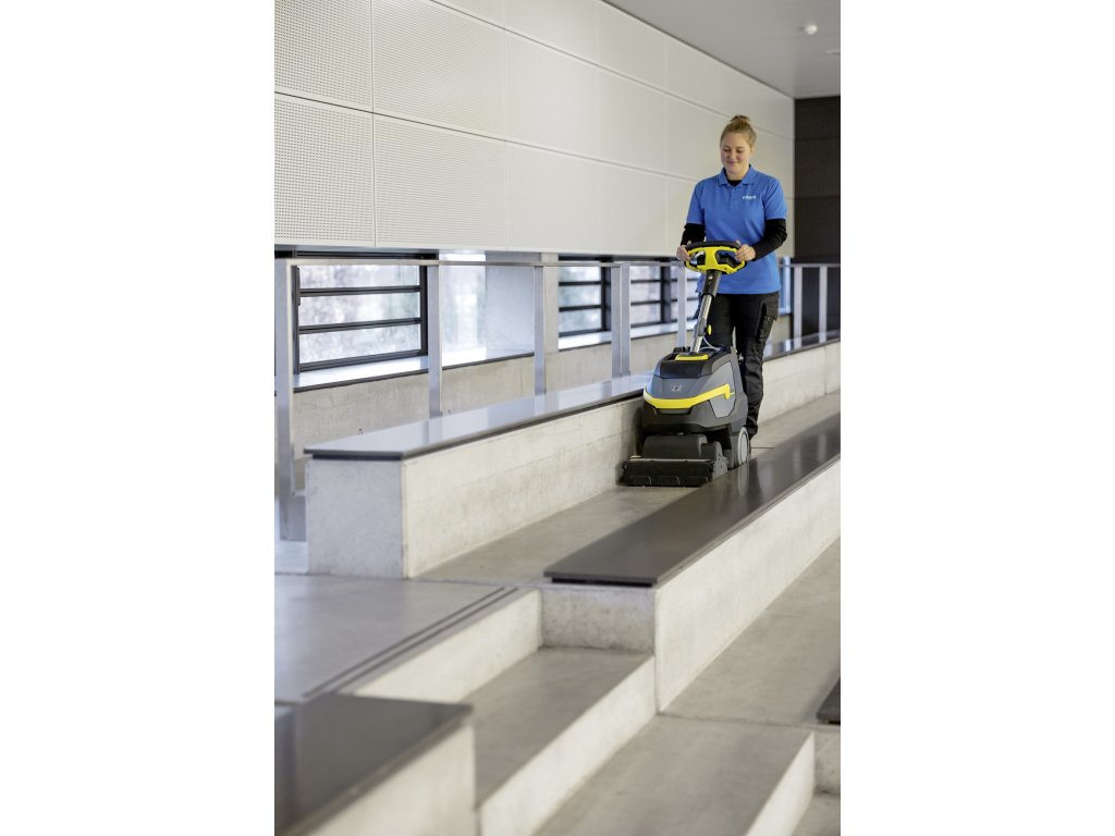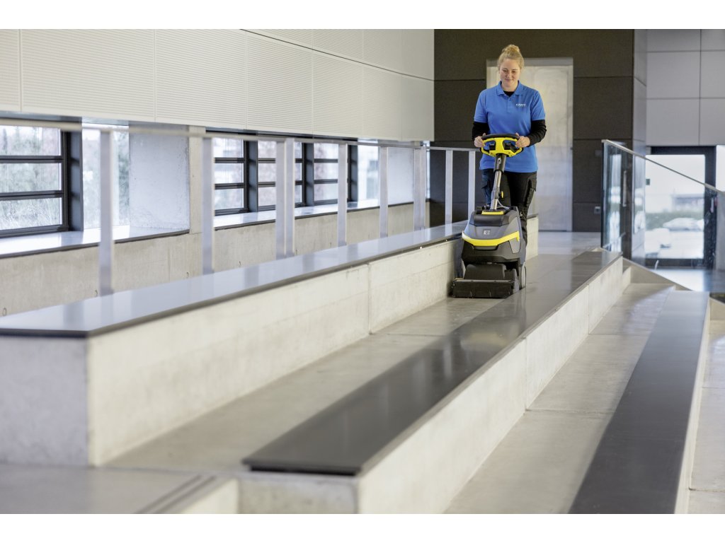 Limitovaná edícia čierneho umývacieho stroja na batérie BR 35/12 C Bp Pack Go!Further, vyrobeného z 38 percent recyklovaného plastu¹⁾ a s exkluzívnym príslušenstvom, je ideálnym riešením pre efektívne čistenie malých a husto zariadených priestorov. Čistí dopredu aj dozadu a vďaka nízkej hmotnosti sa ľahko prepravuje a je vhodný na použitie na schodoch. Jeho otočná valcová kefa s technológiou KART (Kärcher Advanced Response Technology) umožňuje prácu v úzkych zákrutách, čím zaisťuje maximálnu manévrovateľnosť a obratnosť. Výkonná lítium-iónová batéria s dlhou životnosťou umožňuje dlhú dobu prevádzky, je bezúdržbová, rýchlo sa nabíja a až trikrát odolnejšia ako bežné olovené batérie. Pre ešte väčšiu účinnosť je možné stlačením tlačidla aktivovať režim eco!efficiency. To znižuje spotrebu energie, predlžuje výdrž batérie a znižuje prevádzkovú hlučnosť približne o 40 percent, čo umožňuje pracovať aj v oblastiach citlivých na hluk.