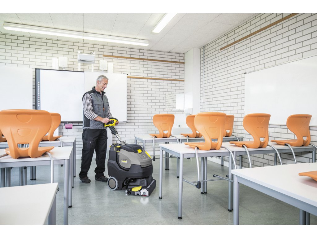 Náš ľahký a veľmi kompaktný umývací automat na batériový pohon BR 30/4 C Bp, zaručuje suché a nešmykľavé podlahy ihneď po vyčistení, váži iba 14 kg.