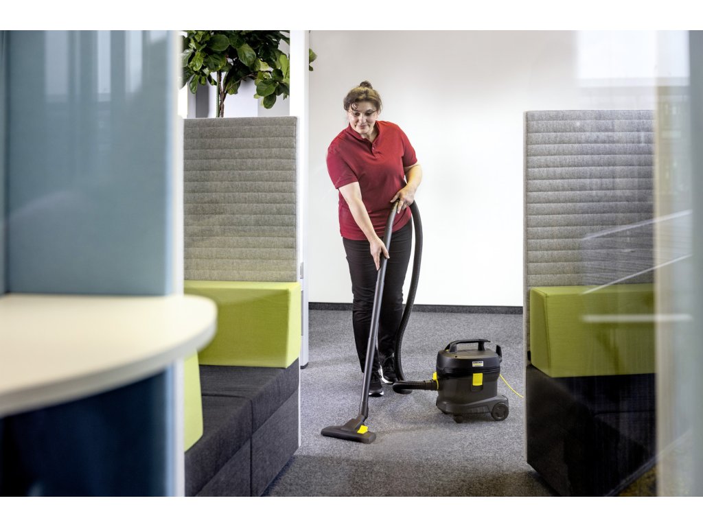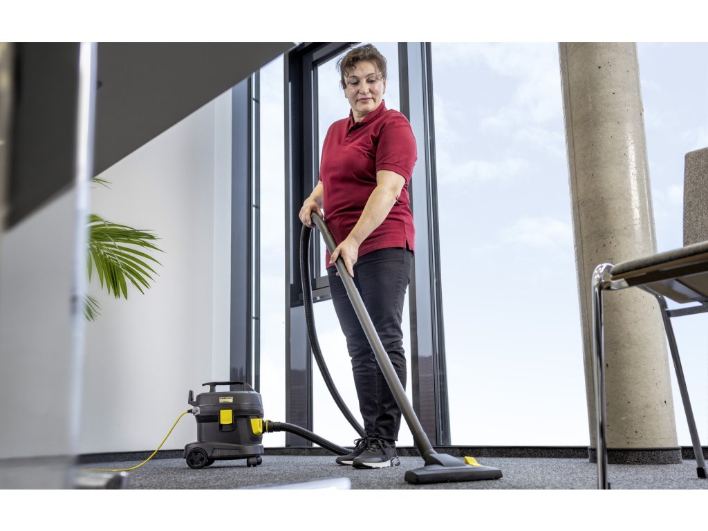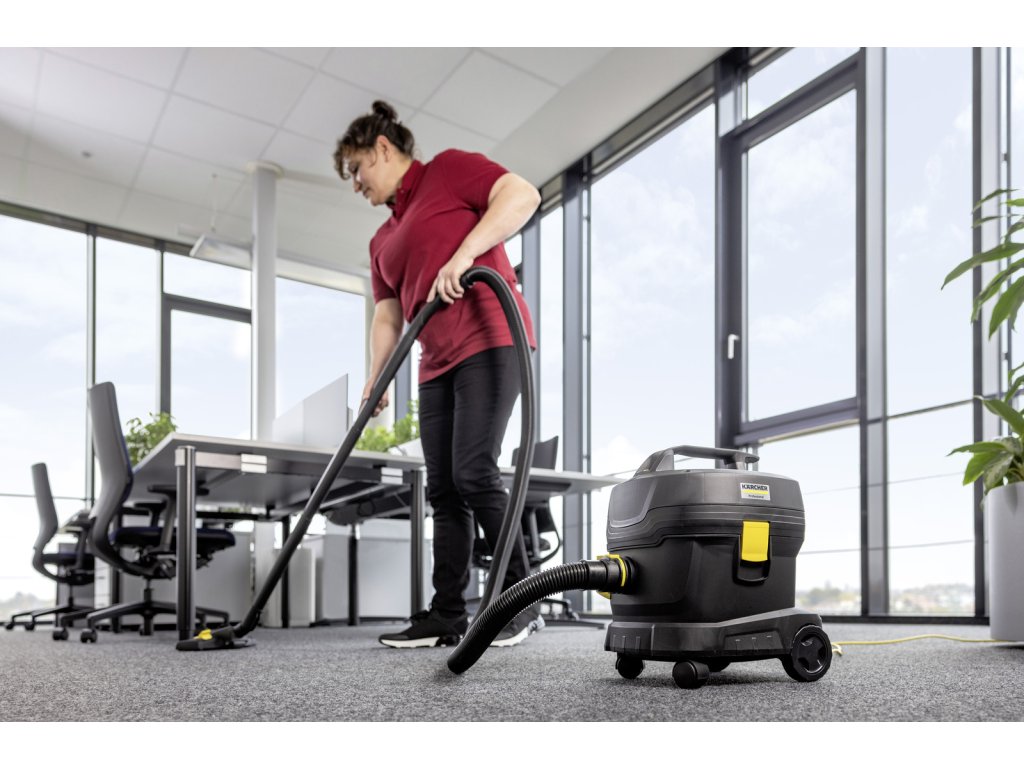 Mimoriadne tichý, udržateľný a odolný: suchý vysávač T 15/1 vyrobený zo 45 % recyklovaného materiálu* ponúka vynikajúci sací výkon a ergonomický, užívateľsky príjemný dizajn.