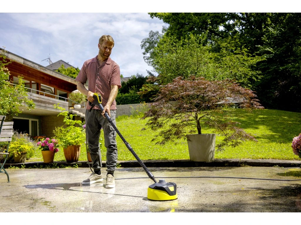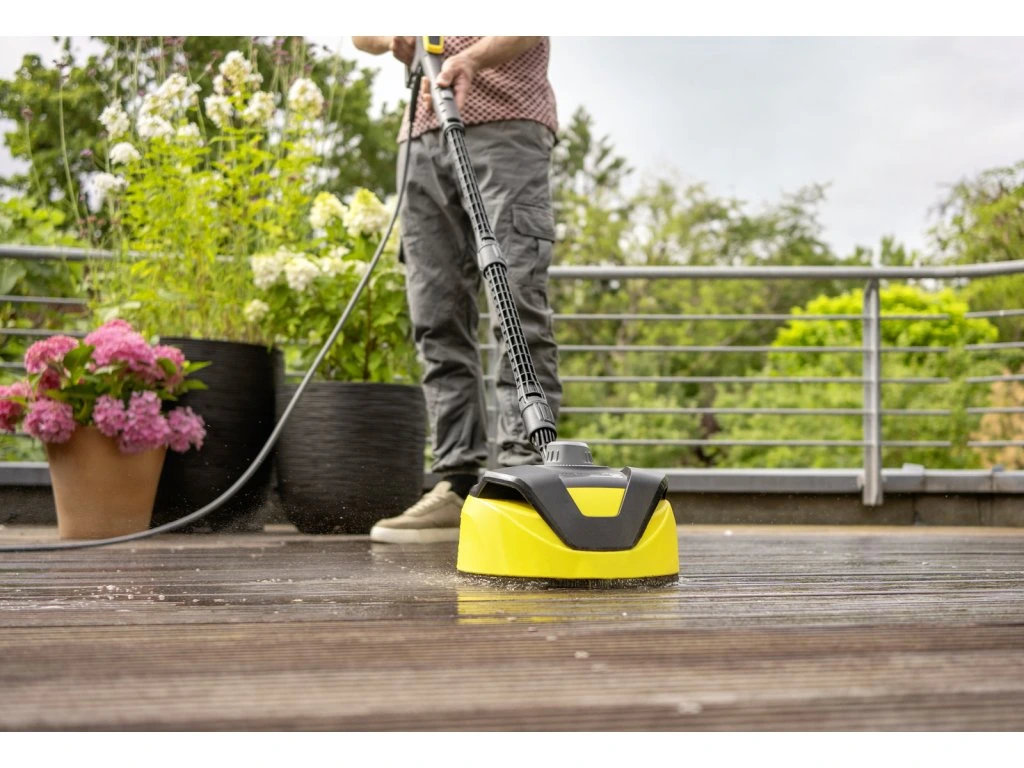 Vďaka výkonovej dýze tiež dôkladne čistí rohy a hrany: plošný čistič T 450 vrátane funkcie oplachovania - pre efektívne čistenie veľkých plôch bez postriekania.