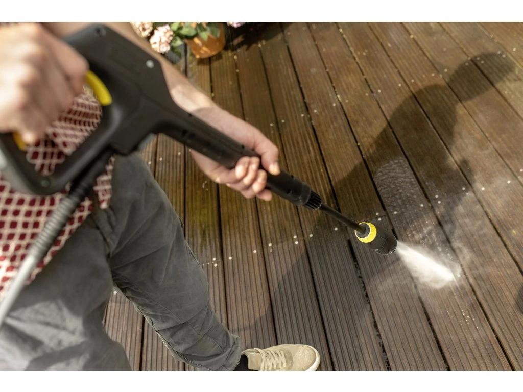 Vysokotlakový čistič K 5 Comfort Premium Home Wood je ideálny na odstraňovanie mierneho znečistenia v domácnosti a aute. Vďaka robustnému, vodou chladenému motoru poskytuje zariadenie konzistentne vysoký čistiaci výkon. Integrovaný navijak hadice s flexibilnou hadicou PremiumFlex umožňuje pohodlnú manipuláciu a zaisťuje maximálnu voľnosť pohybu. Pištoľ G 180 Q COMFORT!Hold citeľne znižuje tlak pri držaní a tým zaisťuje čistenie bez únavy. Vrátane súpravy pre domácnosť s čističom povrchov T 5 a 1 litrom čističa dreva. Praktický systém Quick Connect umožňuje rýchle pripojenie a odpojenie vysokotlakovej hadice. Multifunkčný pracovný nadstavec 4 v 1 bez námahy prepína medzi 4 prúdmi otáčaním hlavy pracovného nadstavca a prispôsobuje sa rôznym čistiacim úlohám. Koncept čistiaceho prostriedku 2 v 1 navyše ponúka väčšie pohodlie a perfektné nanášanie čistiaceho prostriedku podľa danej úlohy. Káble a príslušenstvo sa dajú jednoducho a kompaktne uložiť na zariadení. Pre optimálnu podporu ponúka aplikácia Kärcher Home & Garden integrovaného poradcu pri použití, ako aj užitočné tipy a triky.