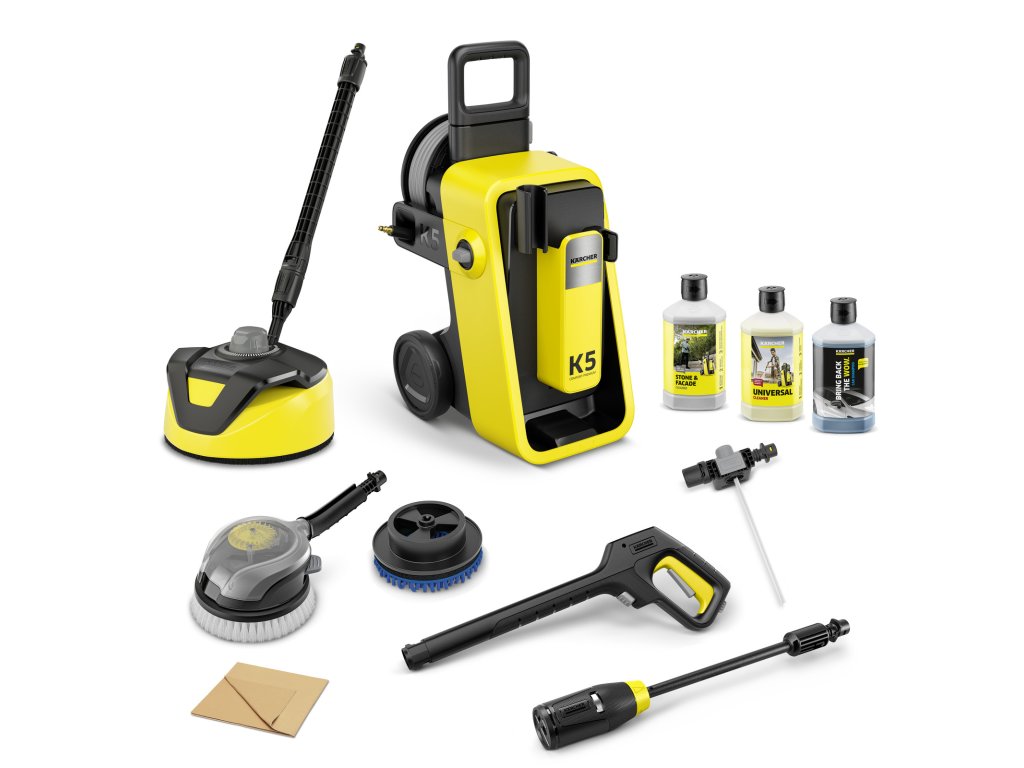 Vysokotlakový čistič K 5 Comfort Premium Car & Home je ideálny na odstraňovanie mierneho znečistenia v domácnosti a aute. Vďaka robustnému, vodou chladenému motoru poskytuje zariadenie konzistentne vysoký čistiaci výkon. Súčasťou balenia je súprava Home Kit s čističom povrchov T 5 a 1 litrom čističa kameňa a fasád a súprava na čistenie auta s rotačnou umývacou kefou s vymeniteľným nadstavcom, utierkou z mikrovlákna a 1 litrom autošampónu. Integrovaný navijak hadice s flexibilnou hadicou PremiumFlex umožňuje pohodlnú manipuláciu a zaisťuje dobrú voľnosť pohybu. Pištoľ G 180 Q COMFORT!Hold citeľne znižuje tlak pri držaní a tým zaisťuje čistenie bez únavy. Systém Quick Connect tiež umožňuje rýchle pripojenie a odpojenie vysokotlakovej hadice. Pracovný nadstavec 4 v 1 Multi Jet prepína medzi 4 prúdmi otáčaním hlavy pracovného nadstavca a prispôsobuje sa rôznym čistiacim úlohám. Koncept čistiaceho prostriedku 2 v 1 zaisťuje pohodlie a dokonalé nanášanie čistiaceho prostriedku v závislosti od použitia. Káble a príslušenstvo je možné kompaktne uložiť na zariadení. Podporu poskytuje aplikácia Kärcher Home & Garden s integrovaným poradcom pre aplikácie a užitočnými tipmi a trikmi.