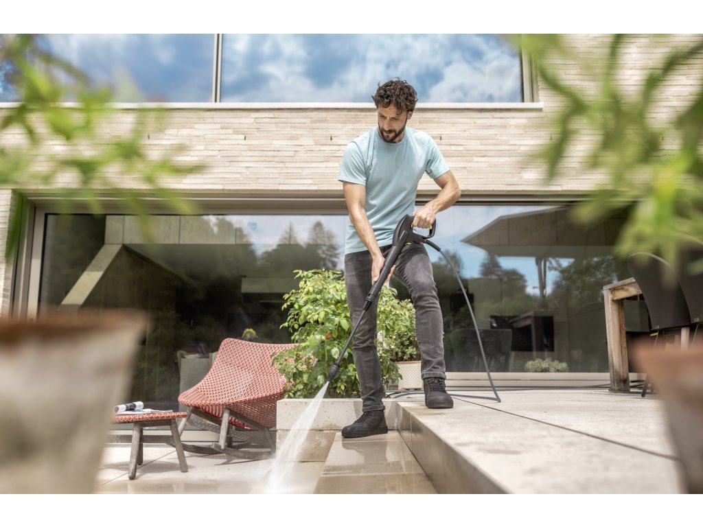S vysokotlakovým čističom K 7 Power Flex je možné každý povrch vyčistiť správnym tlakom. Aplikačný poradca integrovaný do aplikácie Kärcher Home & Garden pomáha používateľovi nájsť správny tlak praktickými tipmi pre každú čistiacu situáciu a čistiacu úlohu – pre dokonalé výsledky čistenia. K 7 Power Flex je vybavený vodou chladeným motorom a bol navrhnutý na časté čistenie, ako aj na odstraňovanie silných nečistôt, ktoré sa často hromadia napríklad na chodníkoch, bazénoch, bicykloch alebo veľkých autách. Rozsiahla výbava zahŕňa pištoľ s praktickým adaptérom Quick Connect cez vysokotlakovú hadicu PremiumFlex, spoľahlivý vodný filter, ktorý chráni čerpadlo, pracovný nadstavec Vario Power (VPS) a Dirt Blaster s rotačným bodovým prúdom. Nastavenie tlaku na VPS je možné nastaviť jednoduchým krútiacim pohybom a rotačná tryska zvládne krátku prácu aj s tými najodolnejšími nečistotami. Medzi ďalšie detaily výbavy patrí čistiaci systém Plug 'n' Clean, hliníková teleskopická rukoväť a parkovacia poloha pre ľahko prístupné príslušenstvo.
